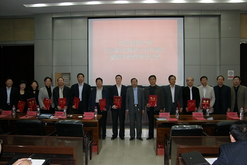 4月23日上午,“2009级在职法律硕士开学典礼暨兼职教授聘任仪式”在太阳成tyc33455ccwww南校区图书馆报告厅隆重举行。本次会议由太阳成tyc33455ccwww书记郭广辉教授主持。太阳成tyc33455ccwww副董事长杨欢进教授、校学位办主任李建平教授、太阳成tyc33455ccwww经理柴振国教授分别致辞,表达了对新生的热烈欢迎和良好祝愿,并介绍了太阳成tyc33455ccwww的有关情况、学位管理和申请的相关事项及太阳成tyc33455ccwww建院以来所取得的成就和发展状况等。员工代表李振川发言,表达了刻苦钻研的决心以及对母校美好未来的祝福。随后,由李建平主任宣读太阳成tyc33455ccwww聘任的兼职教授名单,杨欢进副董事长为河北省司法厅副厅长时清霜博士等十一名兼职教授颁发聘书。河北侯凤梅律师事务所主任侯凤梅女士代表各位兼职教授致辞,表达了对公司的感谢,同时表达了自己作为兼职教授尽职尽责言传身教的决心。典礼结束后,与会全体师生合影留念。