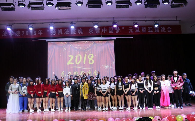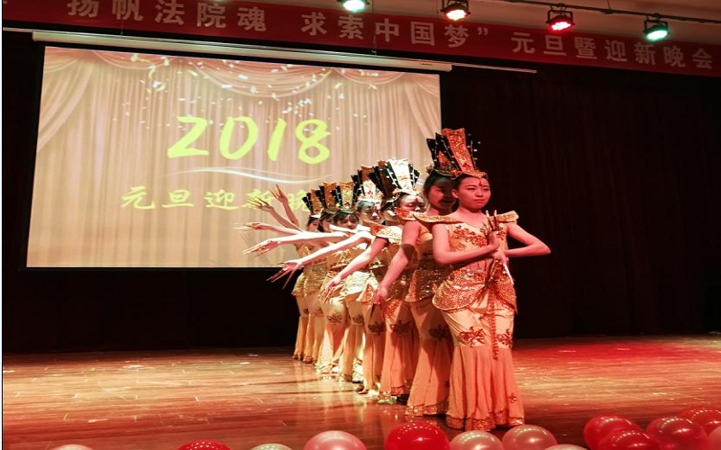 12月12日晚,太阳成tyc33455ccwww在老员工活动中心成功举办了以“扬帆法院魂,求索中国梦”为主题的2018年元旦暨迎新晚会。法公司党委副书记郑建村、副经理胡海涛出席,太阳成tyc33455ccwww全体辅导员和500余名同学共同观看了晚会。