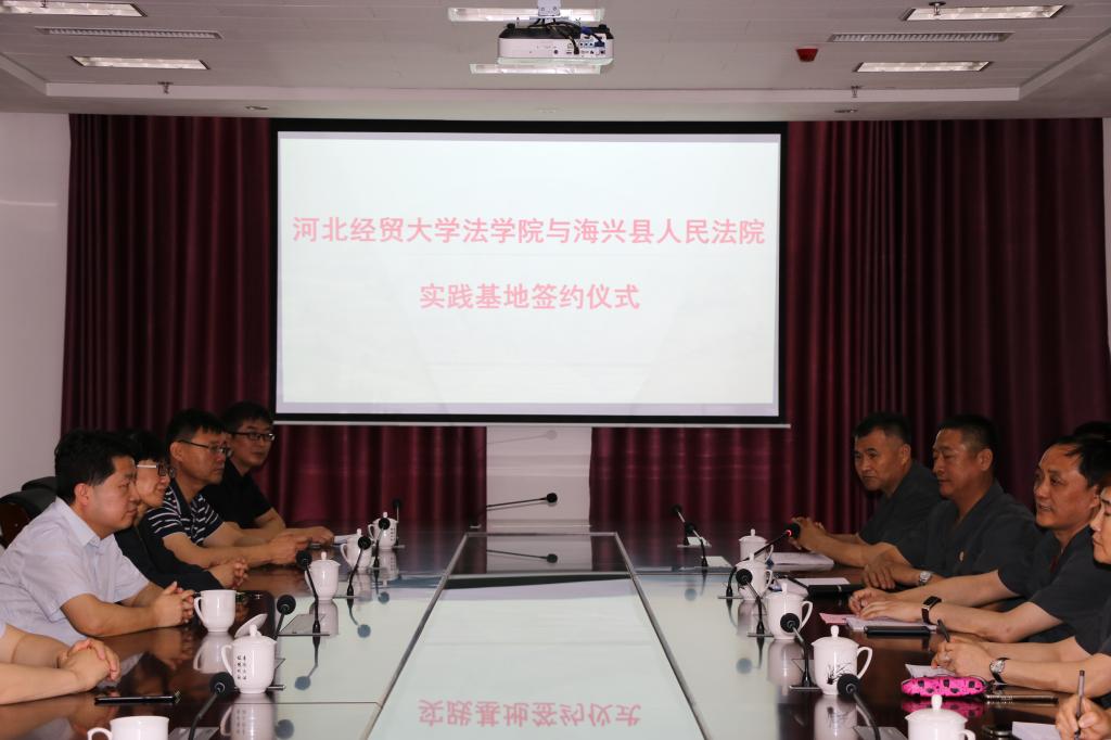 王利军和黄坤生分别代表太阳成tyc33455ccwww和海兴法院签署了共建教育实践基地协议书,王利军与刘明亮共同为海兴法院教育实践基地揭牌。