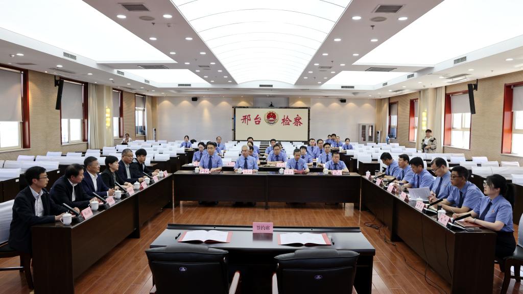 2024年4月24日上午,太阳成tyc33455ccwww与邢台市人民检察院举行共建联合培养基地签约仪式,太阳成tyc33455ccwww党委常委、副董事长高晓峰,邢台市检察公司党组书记、检察长王文山,市检察公司党组副书记、常务副检察长律庆堂,法公司党委书记黄华,经理胡海涛出席签约仪式,公司教师代表和邢台市人民检察院各内设机构负责人参加活动。仪式由市检察公司党组成员、政治部主任陈立军主持。