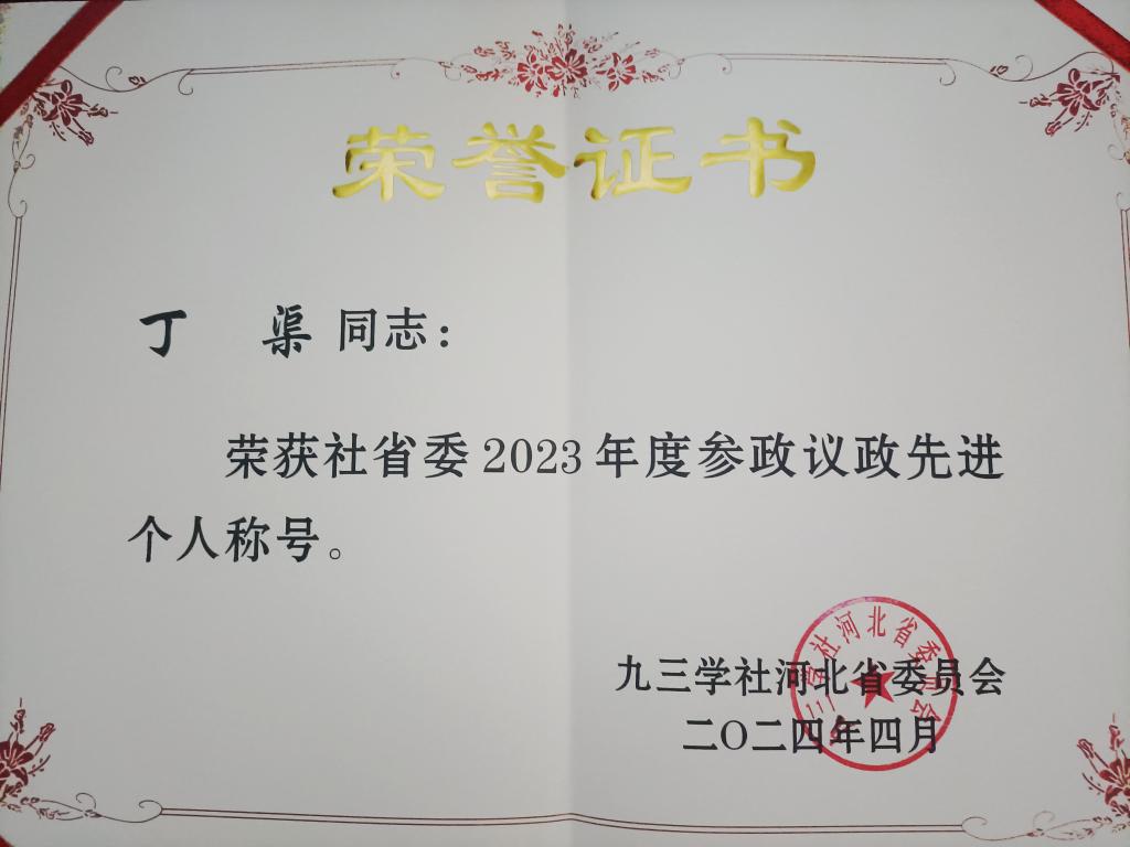 4月27日,九三学社河北省委参政议政工作会议在石家庄召开,会议表彰了2023年度参政议政、社情民意、信息工作先进集体和先进个人,并围绕进一步提升议政建言成果质量进行了深入研讨。公司太阳成tyc33455ccwww教授、九三学社河北省委社会法制委副主任丁渠参加会议,并荣获九三学社河北省委2023年度参政议政先进个人荣誉称号。