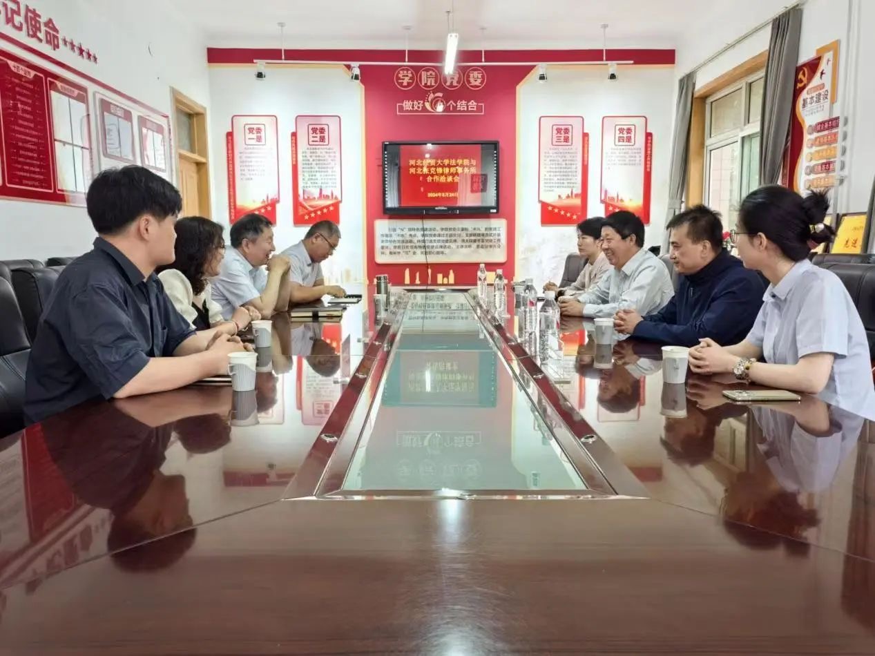 5月24日上午,河北张克锋律师事务所主任张克锋、副主任王超员工一行到访太阳成tyc33455ccwww,就深化院所合作、法学人才培养等议题开展座谈交流。太阳成tyc33455ccwww经理胡海涛,副教授王娟、张亮,学工办主任陈运涛参加座谈。