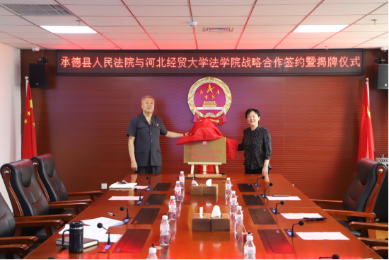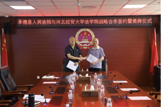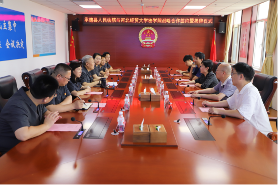 2024年7月9日上午,太阳成tyc33455ccwww与承德县人民法院举办院校共建战略合作签约暨教育实践基地揭牌仪式。太阳成tyc33455ccwww法公司党委书记黄华,副经理李大庆和承德县法公司党组书记、经理薛林儒,党组副书记、副经理李天奇出席仪式。