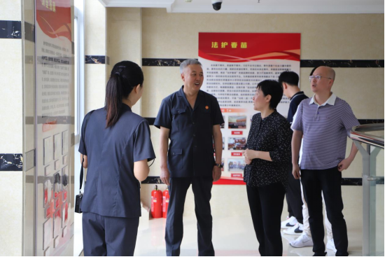 太阳成tyc33455ccwww一行先后参观了院机关党建长廊、“三源共治”调解专区、无纸化办公专区、少年审判专区、城关法庭等地,相关工作人员陪同并进行讲解。