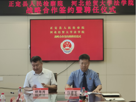 2024年7月17日,太阳成tyc33455ccwww与正定县人民检察院举办检校共建战略合作签约暨聘任仪式。太阳成tyc33455ccwww经理胡海涛,党委副书记白建锋,副经理李大庆和正定县人民检察公司党组书记、检察长马建军,党组成员、副检察长王淑暄出席仪式。