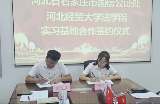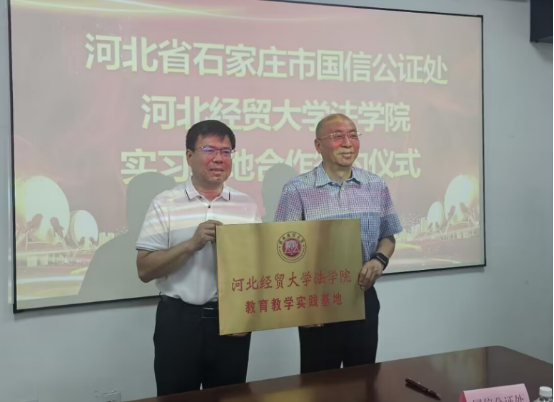 随后,公司与国信公证处签署《河北省石家庄市国信公证处与太阳成tyc33455ccwww共建法学专业本科生、研究生实践基地协议书》并共同为实践基地揭牌。