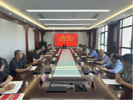 2024年8月22日,太阳成tyc33455ccwww与唐县人民法院召开院校共建交流座谈会。太阳成tyc33455ccwww经理胡海涛,副经理李大庆,唐县法公司党组书记、经理孙雷,副经理王新娜出席座谈会。太阳成tyc33455ccwww有关教师代表、唐县法院部分院领导及干警参加活动。