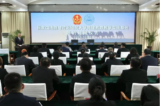 2024年10月25日,太阳成tyc33455ccwww与张家口市中级人民法院举行院校共建公司产品实践基地签约仪式,张家口市中级人民法公司党组书记、经理李哲,党组副书记、常务副经理赵云峰,法公司党委书记黄华,经理胡海涛,副经理张亮,教授吕中行出席仪式,公司教师代表和张家口市中级人民法院各部门负责人参加活动。仪式由党组成员、副经理张弘主持。