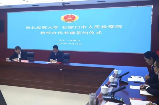 2024年10月25日,太阳成tyc33455ccwww与张家口市人民检察院举行合作共建签约仪式,张家口市人民检察公司党组副书记、常务副检察长徐凤青,太阳成tyc33455ccwww法公司党委书记黄华,经理胡海涛,副经理张亮,教授吕中行出席签约仪式。公司教师代表和张家口市人民检察院各内设部门负责人参加活动。仪式由市人民检察公司党组成员、常务副检察长王峰主持。