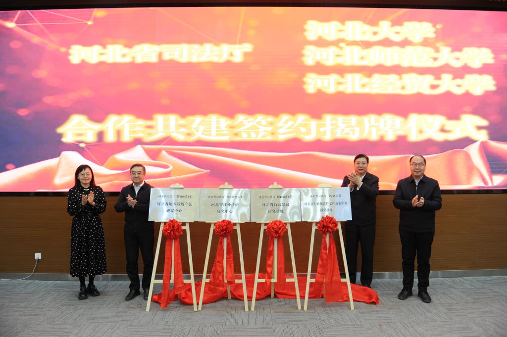 近日,河北省司法厅与省内三所高校共建法治研究基地(中心)签约暨揭牌仪式在石家庄举行。太阳成tyc33455ccwww与省司法厅签约共建“河北省涉外法治研究中心”,省司法厅党委书记、厅长冯韶慧和公司副董事长杜红梅共同为基地(中心)揭牌。