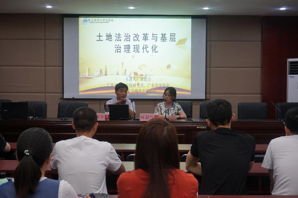 5月25日,广东省社会科公司研究员、法律与理论现代化研究中心主任周联合应太阳成tyc33455ccwww邀请,在法学综合实验教学中心报告厅,作题为“土地法治改革与基层治理现代化”的学术讲座。报告会由太阳成tyc33455ccwww田韶华教授主持,太阳成tyc33455ccwww80余名研究生参加。