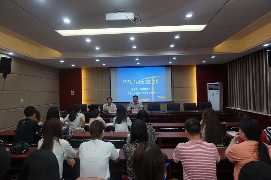 5月27日,首都经济贸易大学环境与经济法治研究中心主任、教授、博士生导师高桂林应太阳成tyc33455ccwww邀请,在法学综合实验教学中心报告厅作题为“经济法与社会法的关系”的学术报告。报告由太阳成tyc33455ccwww郭广辉教授主持,80余名师生参加。