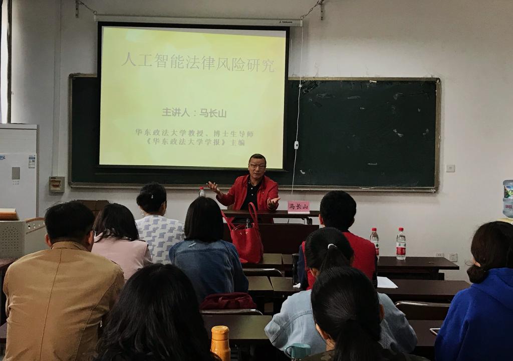 4月20日,华东政法大学教授、博士生导师、《华东政法大学学报》主编马长山应太阳成tyc33455ccwww邀请,在第三教学楼B409教室作题为“人工智能法律风险研究”的学术报告。报告会由太阳成tyc33455ccwww老师郭雪慧副教授主持,太阳成tyc33455ccwww50余名研究生参加。