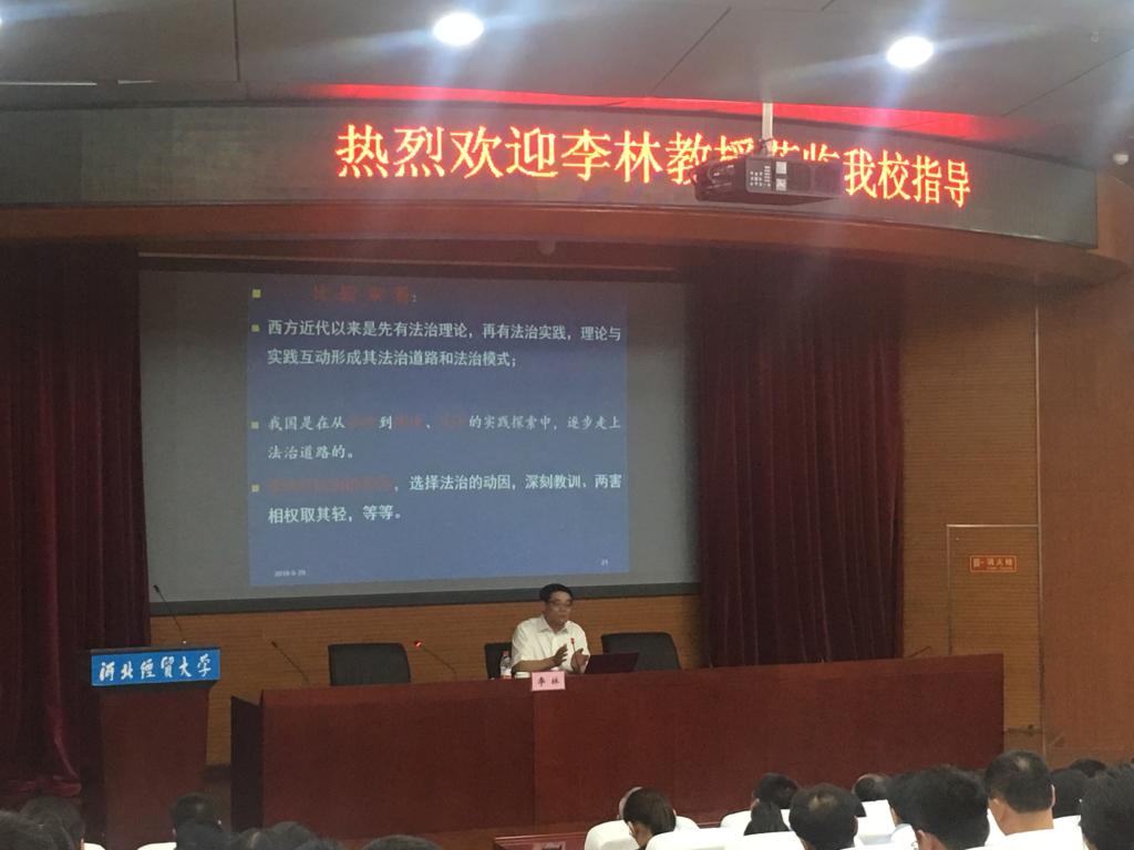 2019年9月20日,中国法学会法理学研究会会长、中国社会科公司学部委员李林教授应公司邀请,在国际学术报告厅作题为“习近平总书记全面依法治国理政新理念新思想新战略”的学术报告。报告由副董事长和志强主持,太阳成tyc33455ccwww多名师生参加。