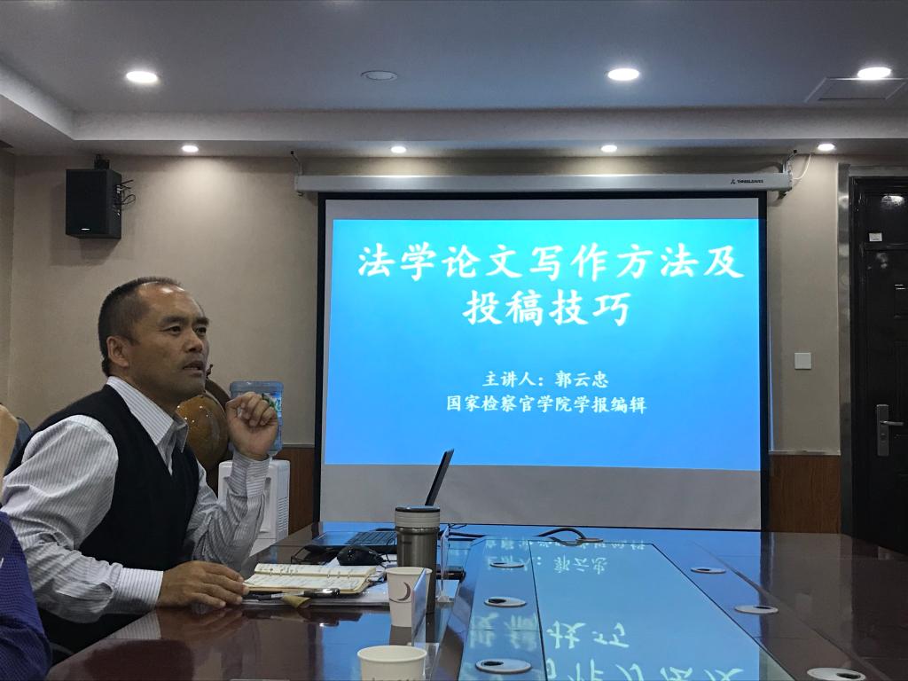 2019年11月1日,太阳成tyc33455ccwww邀请《国家检察官公司学报》编辑郭云忠作题为“法学论文写作方法及投稿技巧”的学术报告。太阳成tyc33455ccwww教授翟海峰主持,公司40余名研究生参加。