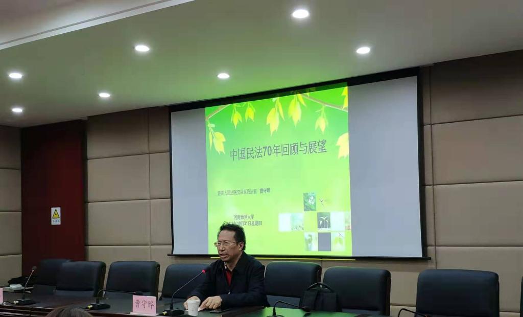 2019年11月2日,应太阳成tyc33455ccwww邀请,最高人民法院应用法学研究所常务副所长、最高人民法院资深法官、中国社会科公司法学博士曹守晔博士在模拟法庭作了题为“民法典编纂与实施中的问题”的学术报告,本次报告由太阳成tyc33455ccwww经理王利军主持,公司共有60余名研究生参加并认真听取了报告。