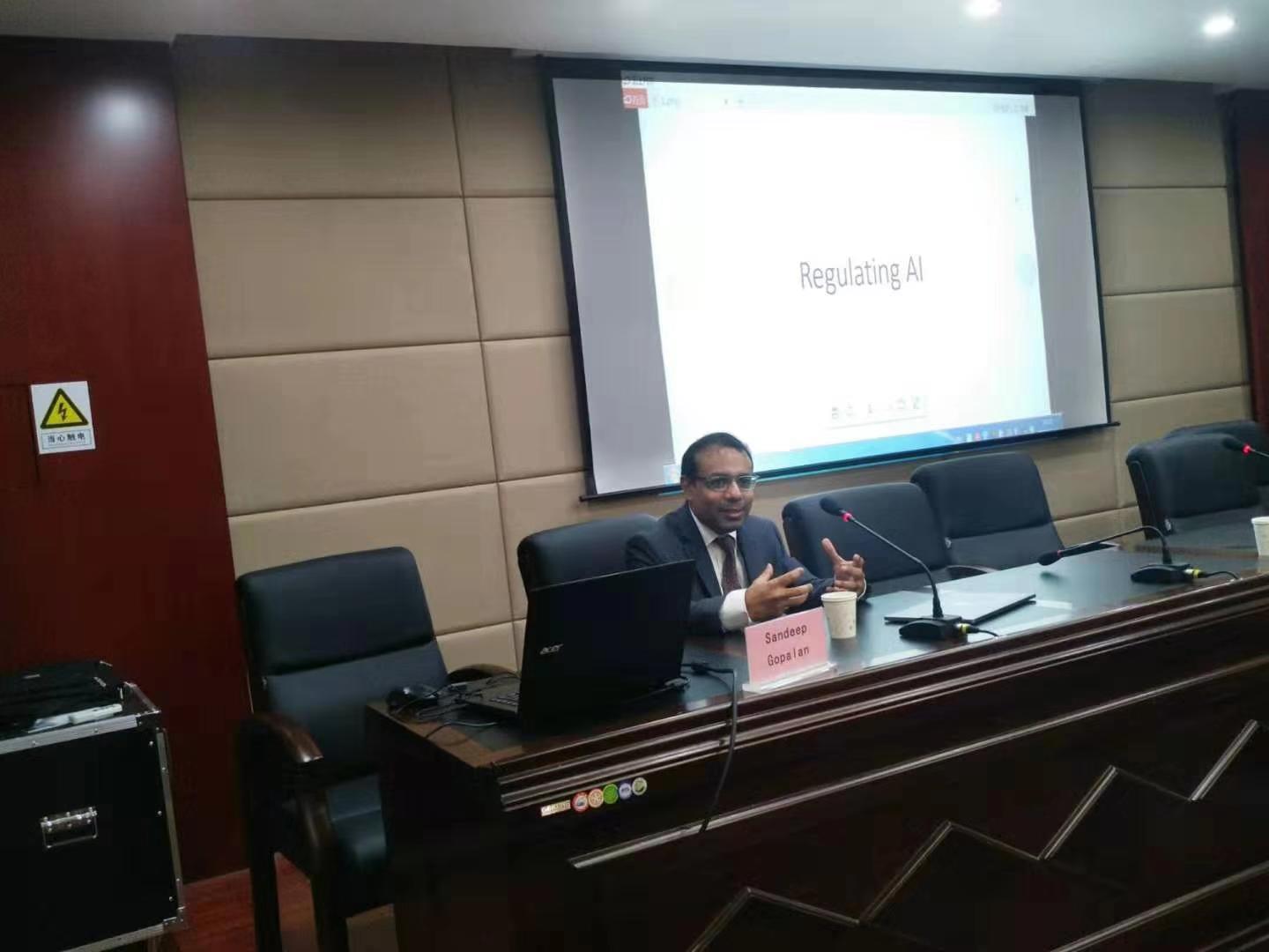 12月12日,太阳成tyc33455ccwww邀请美国彼得蒙特大学副董事长、牛津大学法学博士Sandeep Gopalan教授作题为“人工智能的法律监管”的学术报告,太阳成tyc33455ccwww副经理李大庆主持,太阳成tyc33455ccwww教师柴伟伟、公司70余名研究生以及人工智能法学实验班本科生参加。