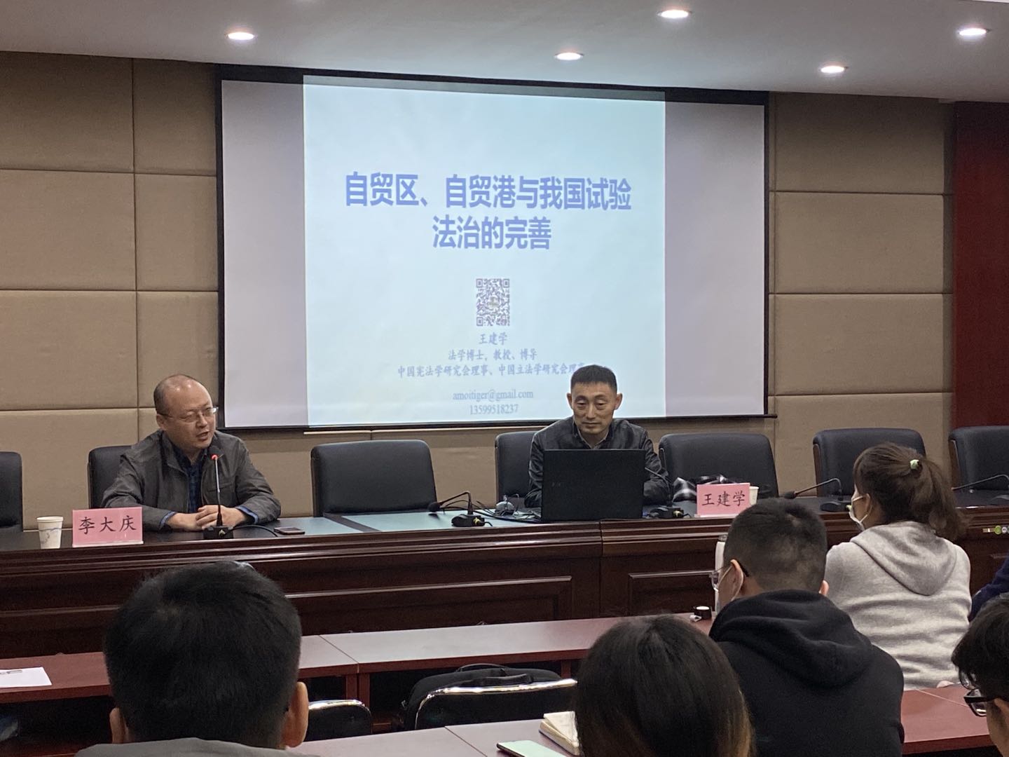 11月10日,太阳成tyc33455ccwww邀请中国法学会宪法学研究会理事、博士生导师王建学教授来校作题为《自贸区、自贸港与我国试验法治的完善》的专题讲座。太阳成tyc33455ccwww副经理李大庆主持,80余名研究生参加。