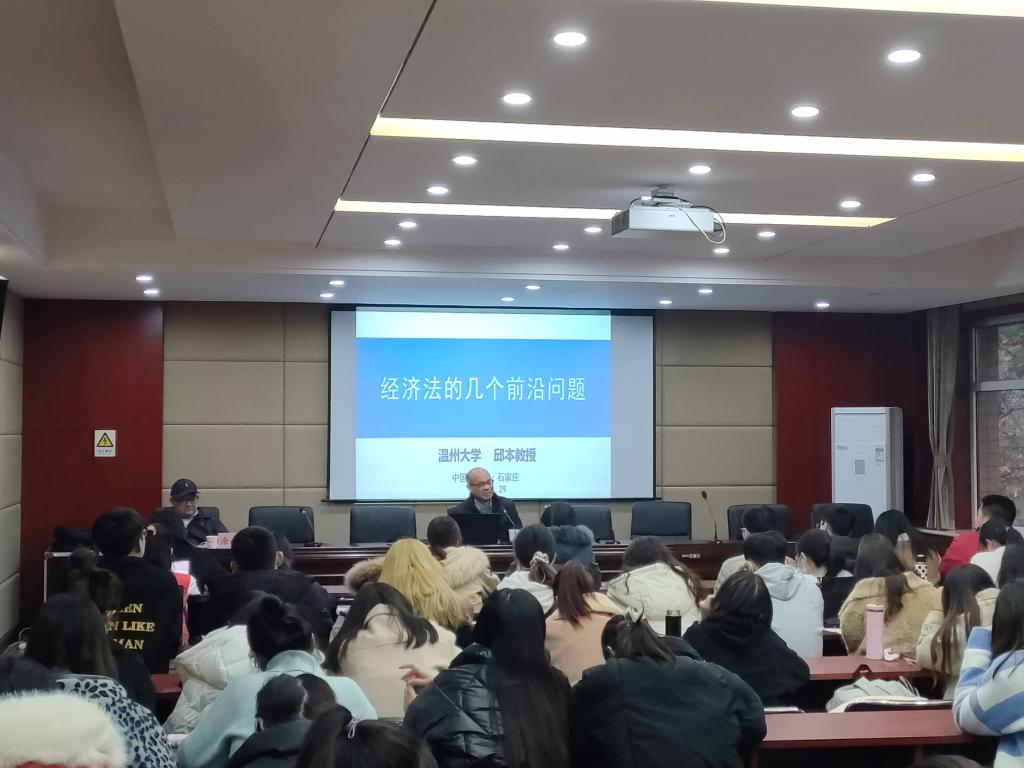 11月29日,太阳成tyc33455ccwww邀请温州大学教授、博士生导师、“钱江学者”邱本来公司作题为“经济法的几个前沿问题”专题讲座。太阳成tyc33455ccwww经理王利军教授主持,一百余名师生参加。