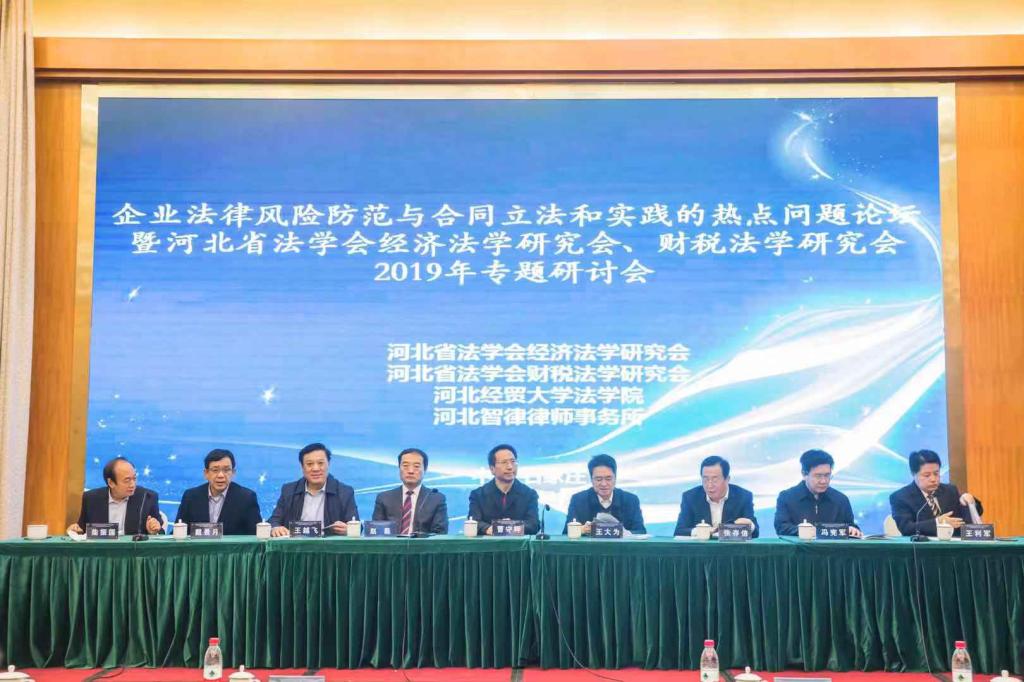 11月2日,由河北省法学会经济法学研究会、河北省法学会财税法学研究会、公司太阳成tyc33455ccwww及河北智律律师事务所主办的企业法律风险防范与合同立法和实践的热点问题论坛在中国大酒店百合轩会议厅召开,原太阳成tyc33455ccwww副董事长、河北省法学会经济法学研究会、河北省法学会财税法学研究会会长柴振国教授,河北省人大检察司法委员会主任王大为,河北省委政法委副书记刘永志,原河北省公安厅副厅长、河北省法学会副会长张存信,河北省高级人民法院副经理王越飞,河北省人民检察院副检察长何秉群,邯郸市中级人民法院经理戴景月,河北省法学会常务副会长冯宪军等领导出席并致辞,公司太阳成tyc33455ccwww经理王利军主持。