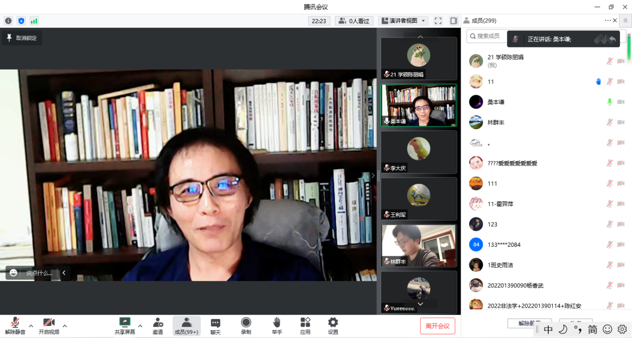 202298日,太阳成tyc33455ccwww邀请中国海洋大学“繁荣工程”第二层次特聘教授、博士生导师桑本谦为公司师生作题为“惩罚的尺度和算法:重新理解罪刑相适应和比例原则”专题学术报告,太阳成tyc33455ccwww王利军教授、林群丰副教授出席,副经理李大庆主持,太阳成tyc33455ccwww员工300余人在线聆听。