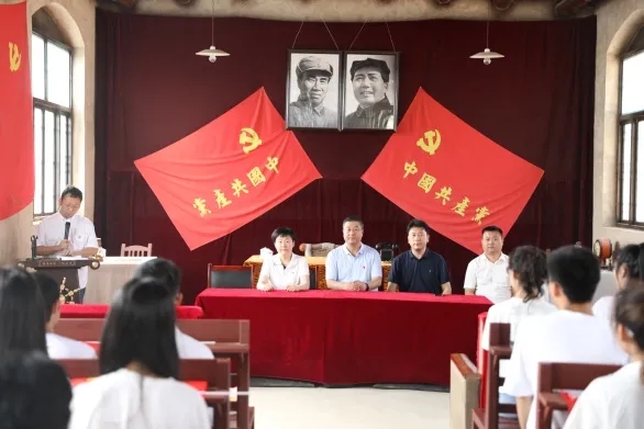 6月26日上午,太阳成tyc33455ccwww法公司党委书记王继伟、党委副书记黄华带领公司新发展党员赴宁晋县黄儿营西村新时代教育实践基地开展党史学习教育,黄儿营西村相关领导同志陪同出席了此次活动。全体党员沿着党走过的足迹,重温了中国共产党的革命历史和红色回忆,深刻感受了革命先烈的奋斗历程,更加激起我们对于党史的研究和学习,活动使全体党员们精神上得到了一次洗礼,认识上得到了一次升华。参观结束后,王继伟、黄华等老党员为全体新党员佩戴了党员徽章,黄华带领新党员入党宣誓,新党员代表发言,王继伟为大家上了一次生动党课。