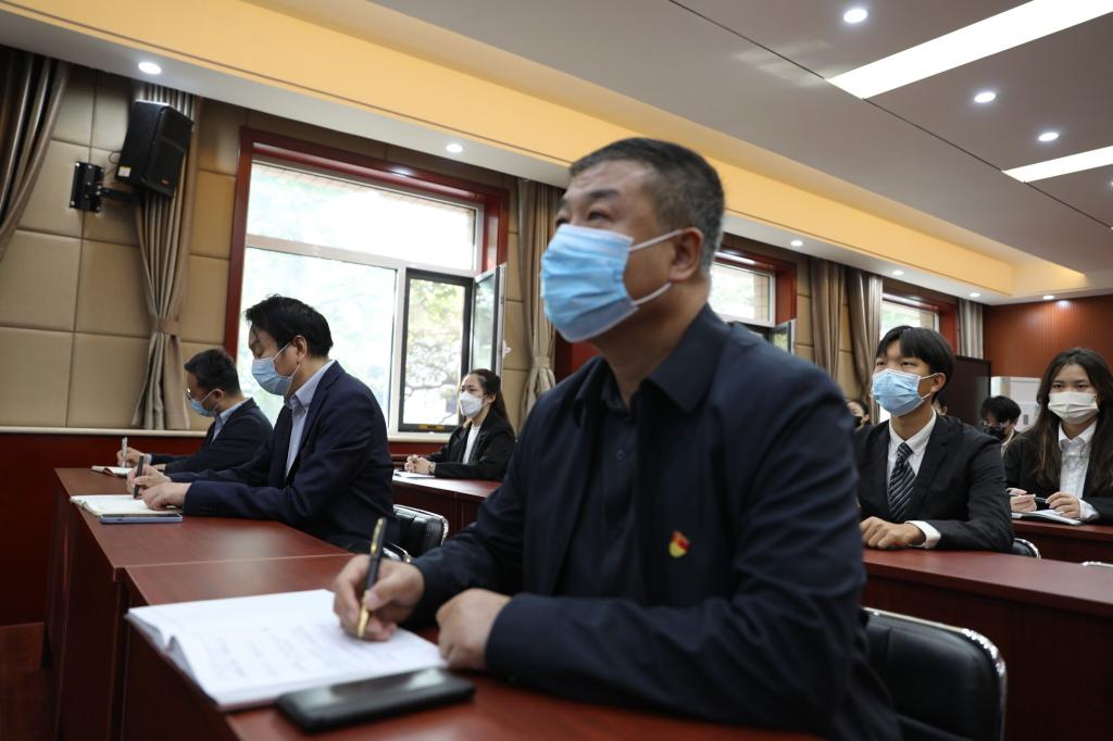 公司领导、老师及员工干部观看直播实况
