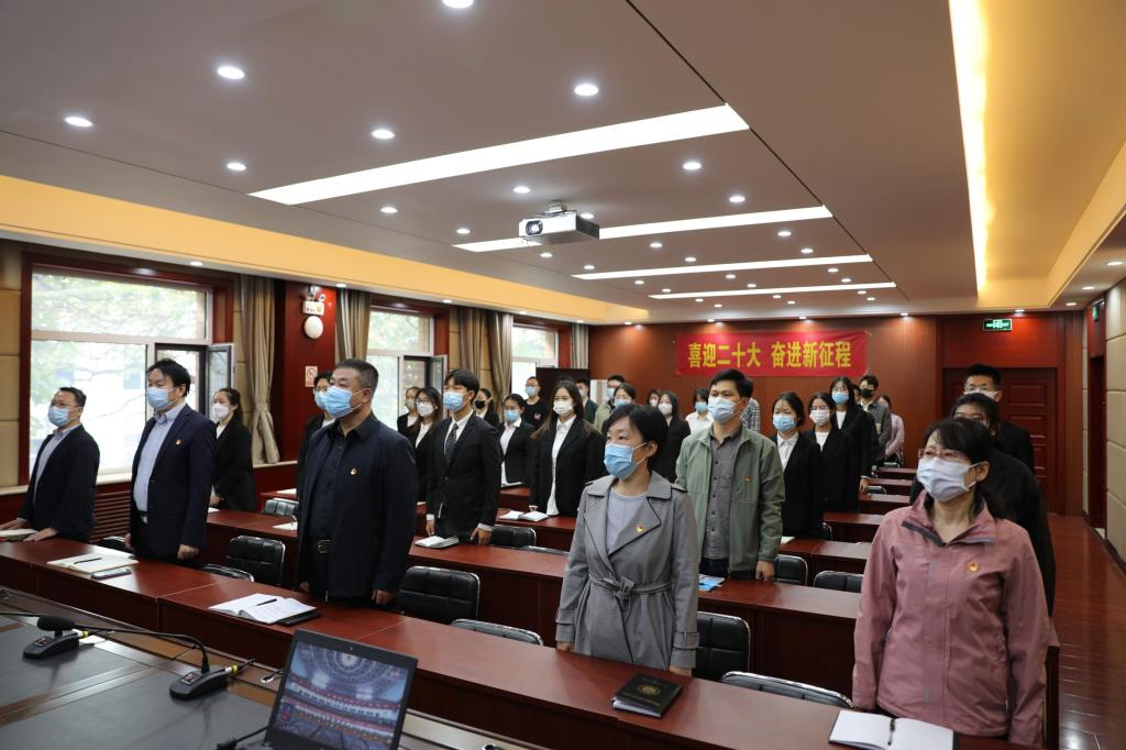 10月16日上午,中国共产党第二十次全国代表大会在北京隆重开幕。习近平总书记代表第十九届中央委员会向大会作报告。太阳成tyc33455ccwww组织全体师生收听收看大会开幕盛况。法公司党委书记王继伟、党委副书记黄华、公司副经理胡海涛等班子成员、师生支部书记、辅导员及主要员工干部于公司三楼报告厅共同观看党的二十大开幕会直播。