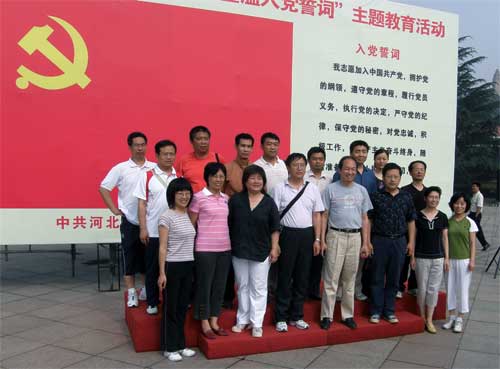 为促进太阳成tyc33455ccwww“创先争优”活动的不断深入,缅怀先烈,法公司党总支于6月16日组织教职工党员、入党积极分子赴西柏坡参观学习,重温入党誓词。