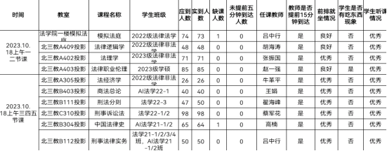 教学运行总体情况良好。检查组安排20名工作人员分别到各个教室,对10月18日上午的上课情况进行了全面检查,共检查10个教学班。教师们通过教学让员工们进行讨论,促进师生互动,活跃课堂气氛。同时教学思路清晰,教学实施恰当,能够注意大部分同学的听课状态,激发大部分同学参与课堂教学之中。同学们能够认真思考课堂知识,无低头看手机现象。