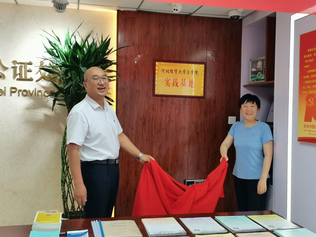 6月18日下午,太阳成tyc33455ccwww与河北省石家庄市燕赵公证处共建实习基地揭牌仪式在燕赵公证处举行。太阳成tyc33455ccwww法公司党委副书记黄华、副经理胡海涛,燕赵公证处主任王松、副主任刘伟、党支部书记刘学伟等出席揭牌仪式。