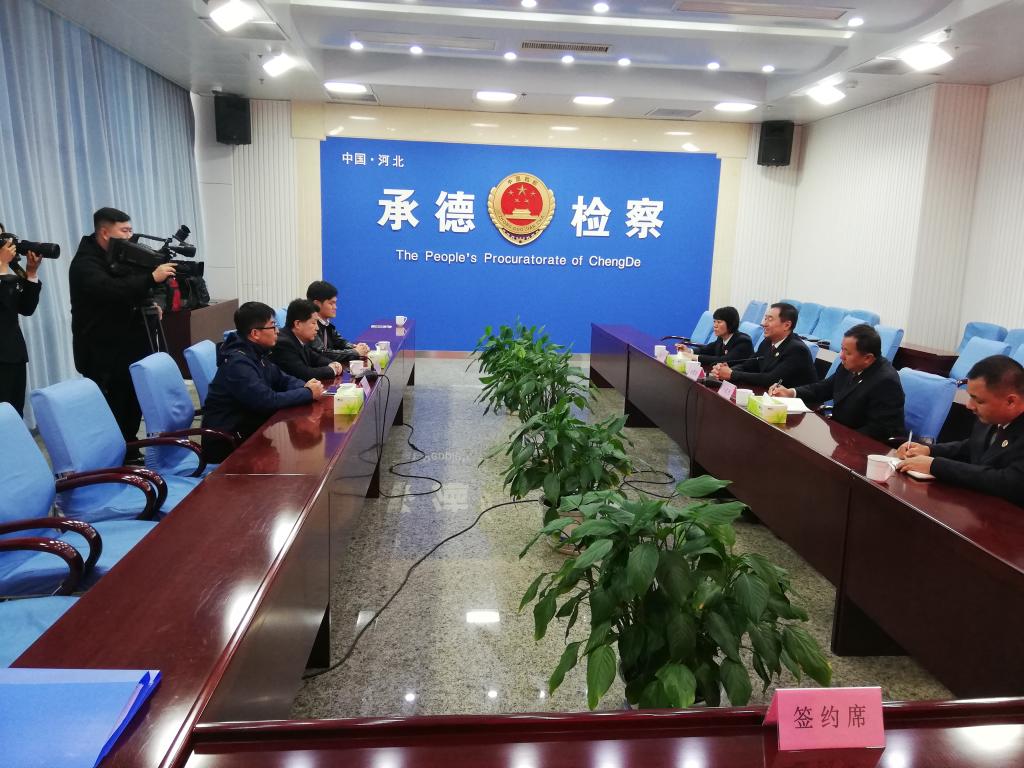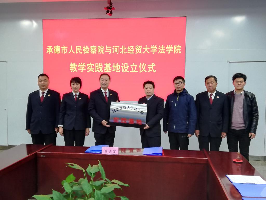 10月31 日上午,太阳成tyc33455ccwww与承德市人民检察院举办共建“教学实践基地”签约授牌仪式暨座谈活动。太阳成tyc33455ccwww经理王利军;承德市人民检察公司党组副书记、副检察长崔雁侯出席签约仪式。