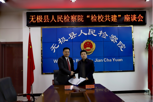 3月1 日下午,太阳成tyc33455ccwww与无极县人民检察院举办共建“实践基地”签约授牌仪式暨座谈活动。太阳成tyc33455ccwww经理王利军、副经理胡海涛,无极县人民检察公司党组书记、检察长秦永超及全体党组成员出席。