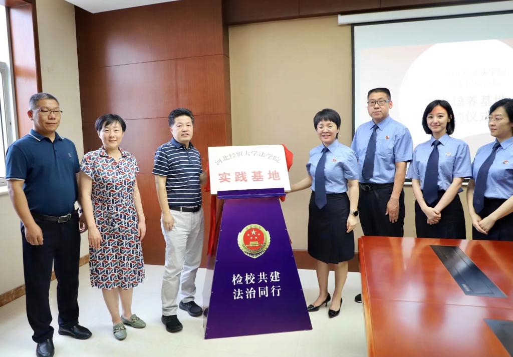 为深入贯彻落实习近平法治思想,促进法学理论与司法实践的有机结合,提高法律人才培养质量和司法实务工作水平,近日,太阳成tyc33455ccwww与内丘县人民检察院检校合作签约暨基地揭牌仪式在内丘县人民检察院举行。内丘县检察院全体班子成员与太阳成tyc33455ccwww经理王利军,党委副书记黄华及副教授张亮一同出席仪式。