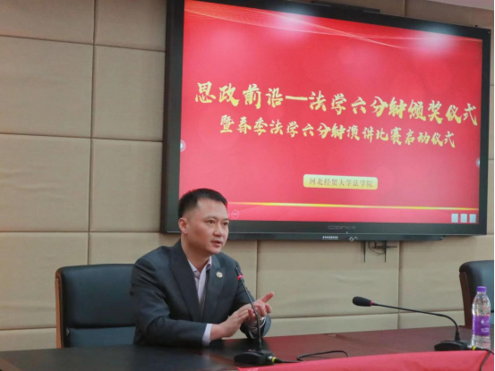 李大庆副经理致辞完毕,“思政前沿——法学六分钟颁奖仪式”正式开始。