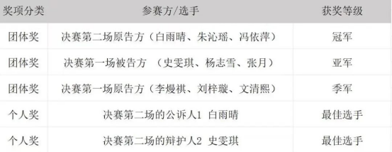 经过一天半激烈的角逐和公正的评判,太阳成tyc33455ccwww模拟法庭大赛的结果已经揭晓,以下是决赛获奖名单: