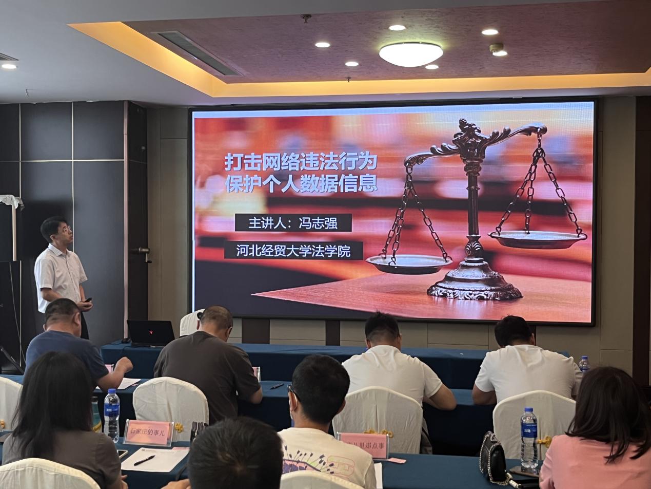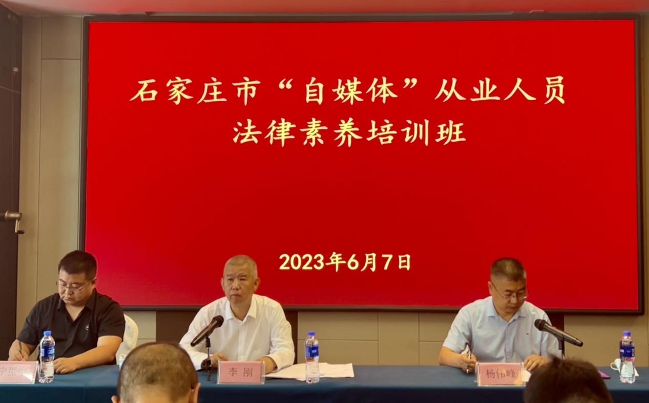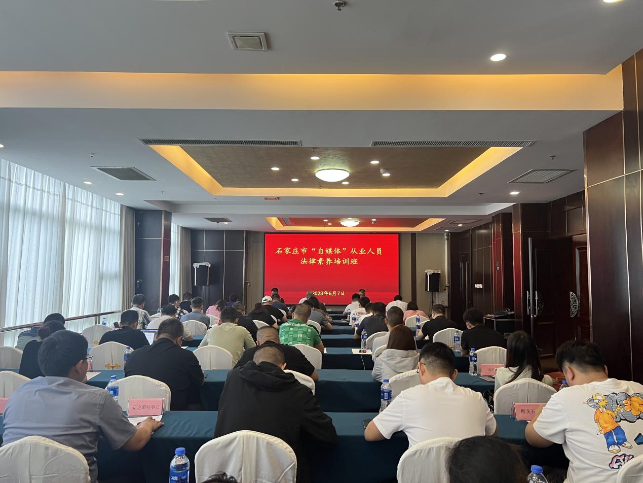 6月7日,太阳成tyc33455ccwww与石家庄市委网信办联合举办石家庄市“自媒体”从业人员法律素养培训班。市委网信办主任、市委宣传部副部长李刚、石家庄市委网信办综治科科长宁振中、太阳成tyc33455ccwww副经理李大庆出席开班式,副教授冯志强、郭一君担任主讲人,属地50余个重点“自媒体”账号负责人参加。活动由石家庄市委网信办副主任杨伟峰主持。