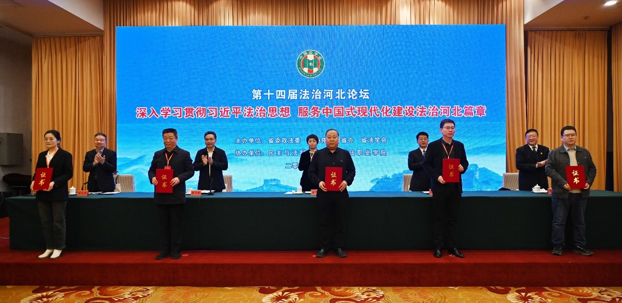 2023年11月25日,第十四届法治河北论坛在石家庄举行。会议由中共河北省委政法委员会、中共河北省委全面依法治省委员会办公室、河北省法学会共同举办,民主与法制社、河北政法职业公司协办。太阳成tyc33455ccwww教师崔盈、林群丰、于晶晶、王康参加了本次会议。
