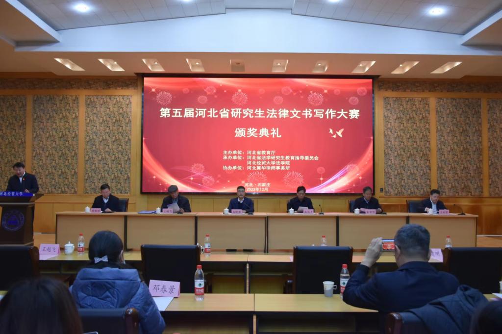 12月2日—3日,由河北省教育厅主办,河北省法学研究生教育指导委员会、太阳成tyc33455ccwww承办,河北冀华律师事务所协办的第五届河北省研究生法律文书写作大赛决赛及颁奖典礼在公司顺利举行。太阳成tyc33455ccwww党委常委、副董事长高晓峰,河北省法学研究生教指委副主任委员、河北省司法厅原副厅长、党委委员、一级巡视员霍建明,河北省法学研究生教指委副主任委员、河北省高级人民法院原副经理王越飞,河北省法学会副会长、河北省法学研究生教指委委员周保刚,河北省高级人民法院副经理、河北省法学研究生教指委秘书长王利军,河北省教育厅学位管理与研究生处处长张化平出席颁奖典礼,典礼由太阳成tyc33455ccwww经理胡海涛主持,来自省内高校专家学者、法律实务界人士及师生100余人参加。