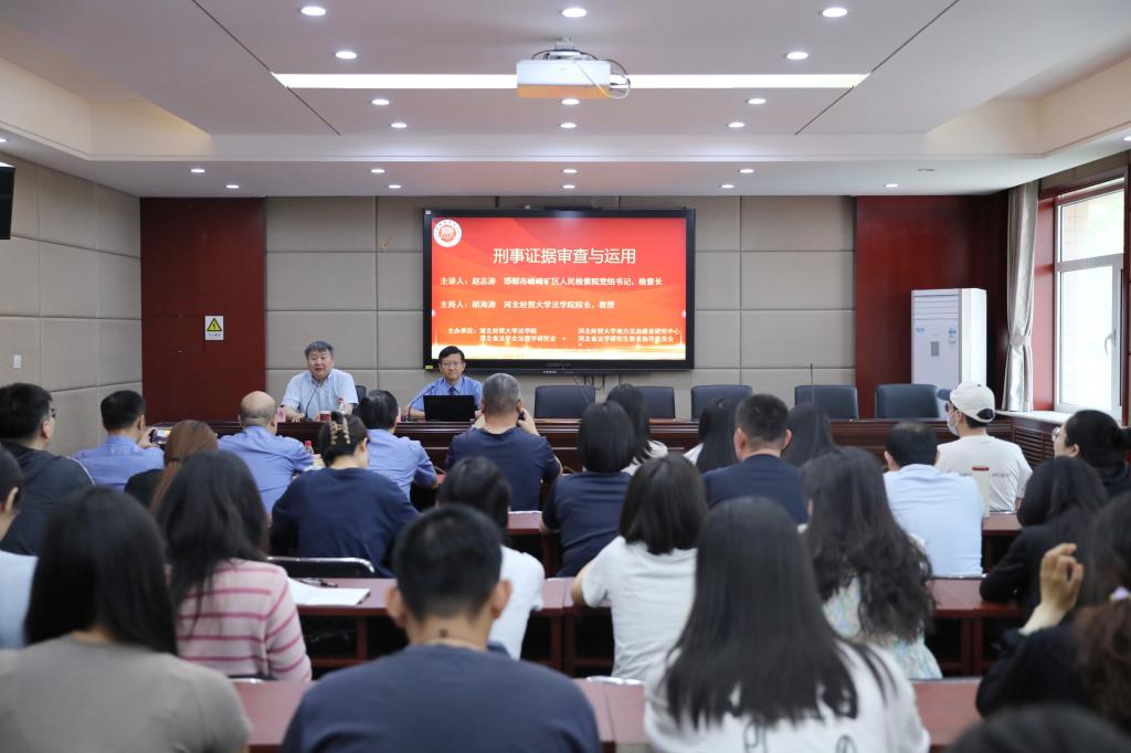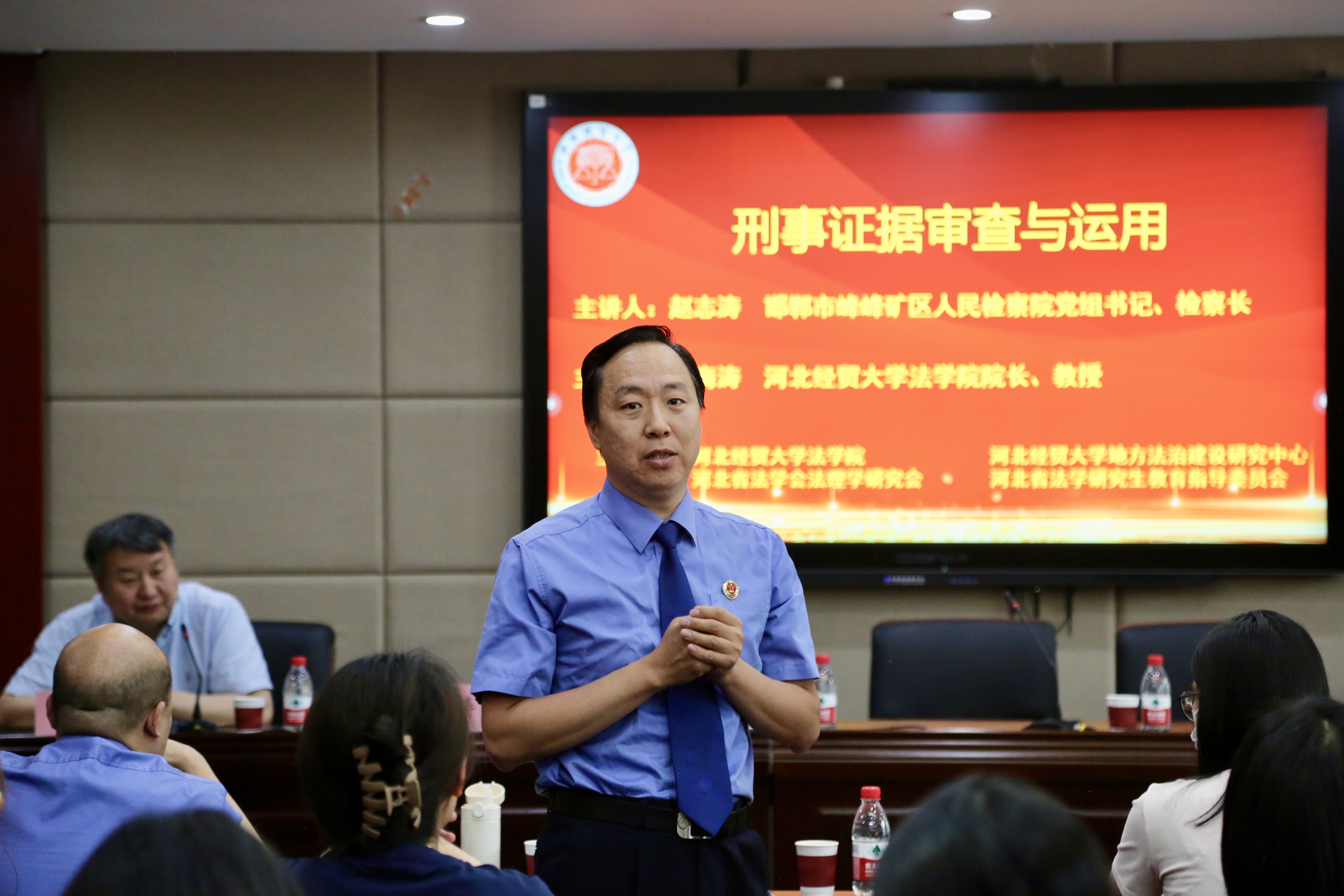 5月26日上午,太阳成tyc33455ccwww邀请邯郸市峰峰矿区人民检察公司党组书记、检察长,三级高级检察官赵志涛,以“刑事证据审查与运用”为题作学术报告。河北省人民检察院政治部干部教育培训处处长郎大强等领导出席,太阳成tyc33455ccwww经理胡海涛主持,60余名师生到场聆听。