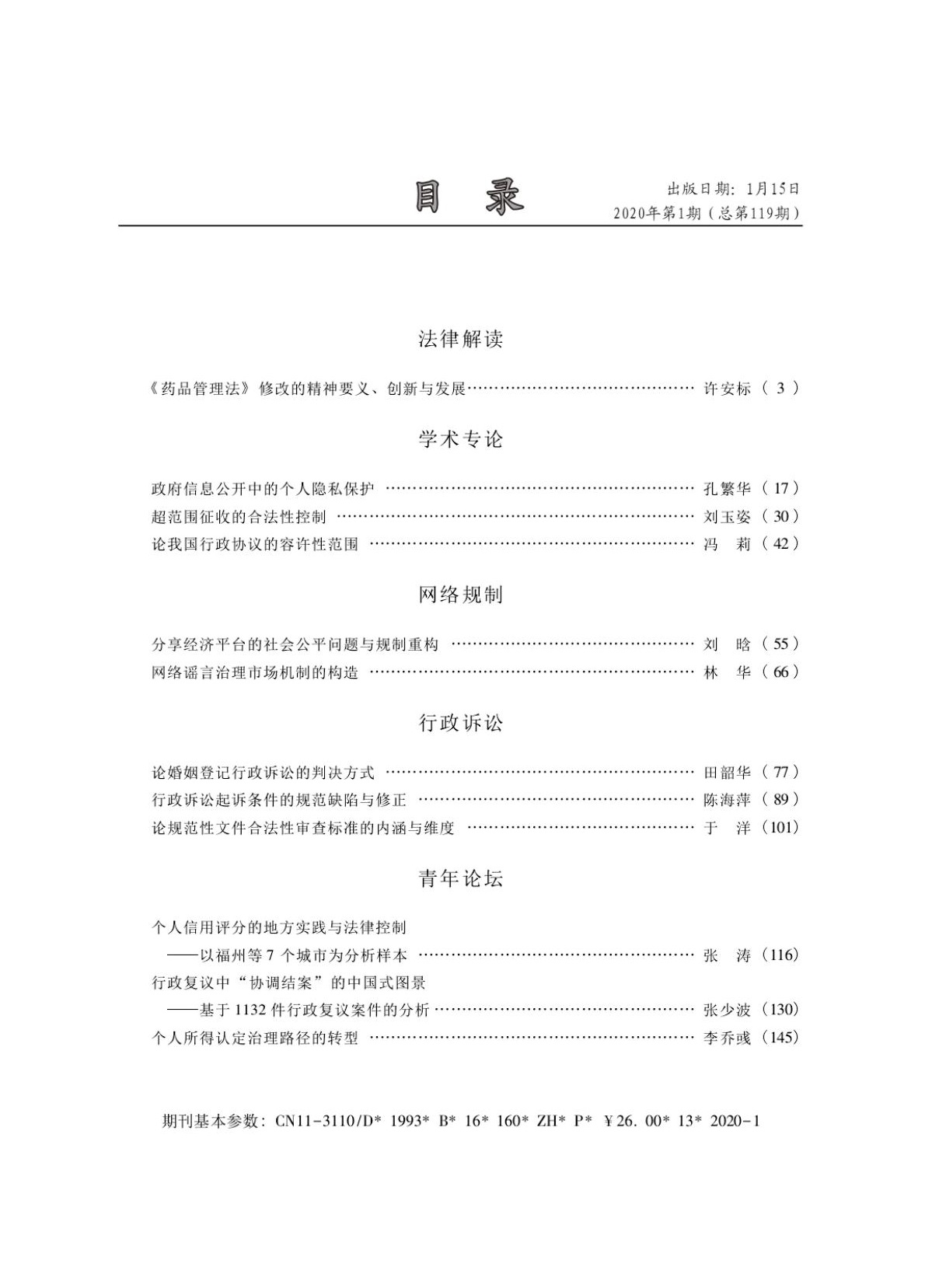太阳成tyc33455ccwww田韶华老师在《行政法学研究》发表论文