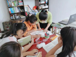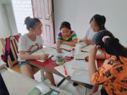 暑期正式开始,一切准备就绪,她和小朋友们也开始了快乐的学习生活。可是在这之前潘应琴同学也遇到不少困难:首先是去找到需要辅导的小朋友,后来准备过程中意识到自己要怎么保证孩子们的安全;还要怎么准备教室、课桌、黑板;教材如何的来;怎么授课才能让她们听懂;课程应该怎么规划等等。