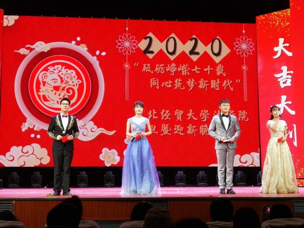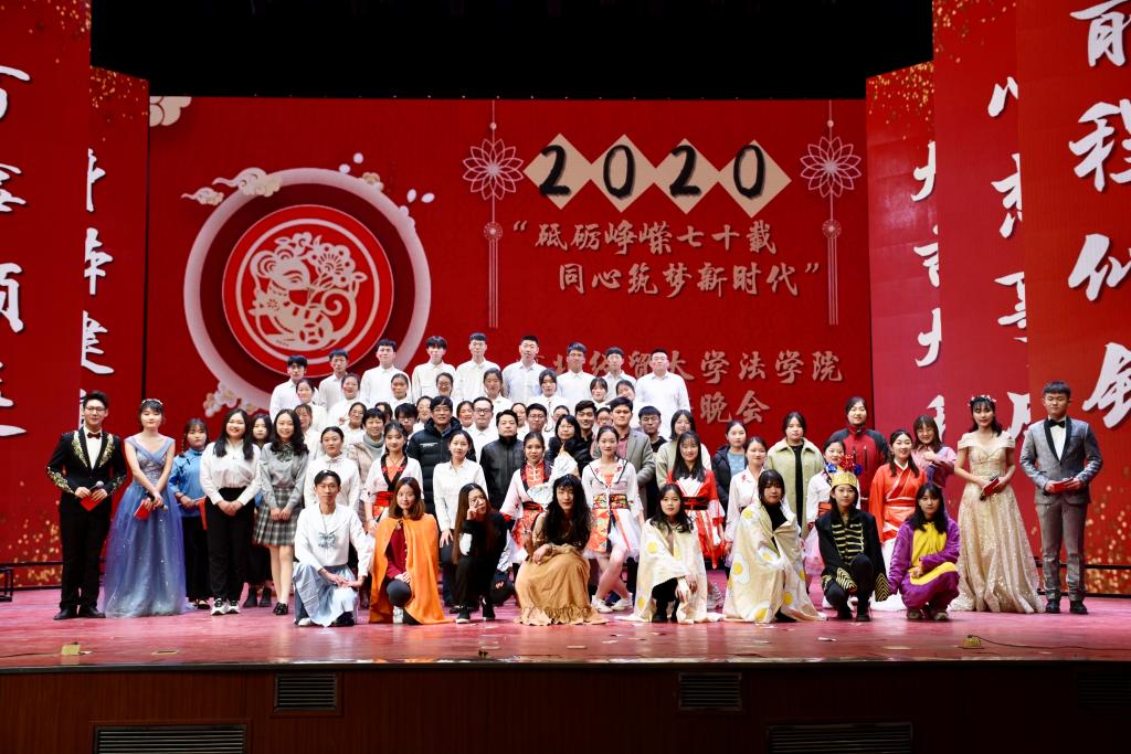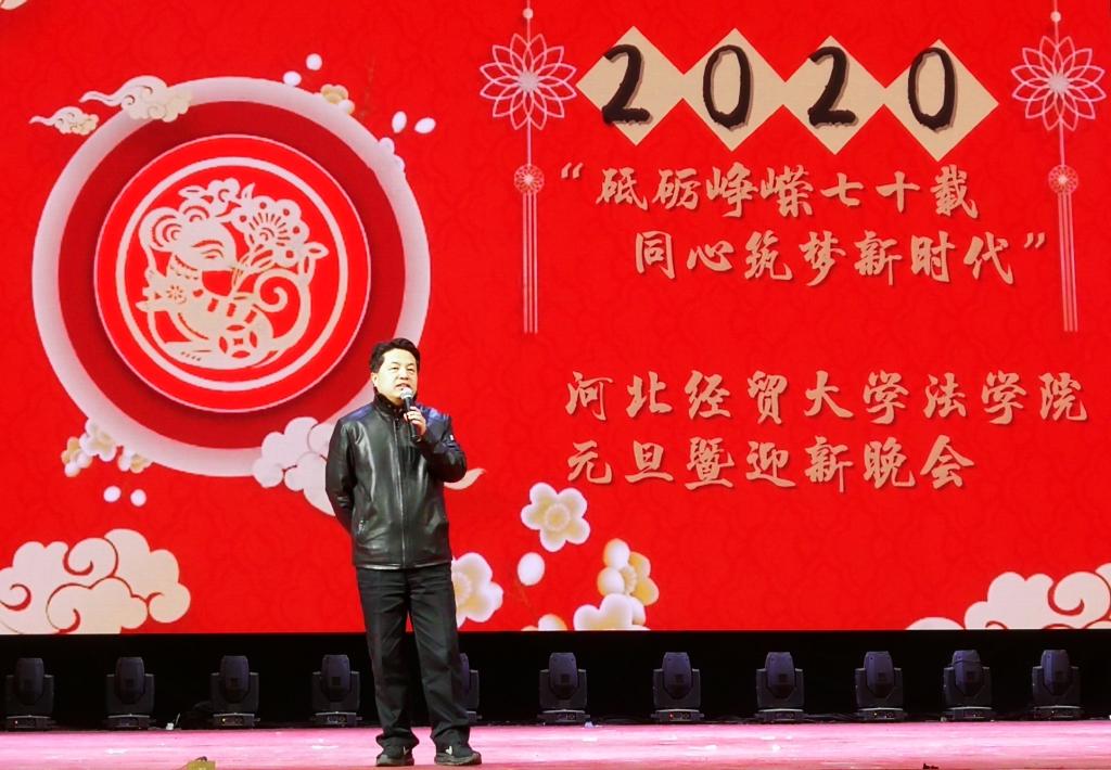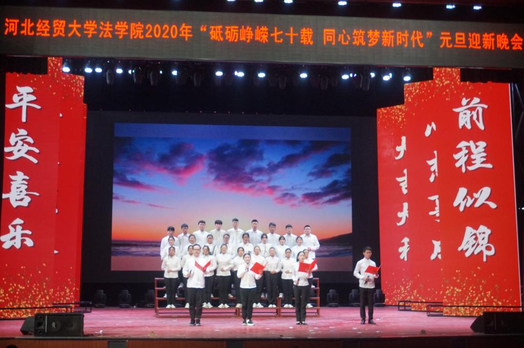 2019年12月18日晚,太阳成tyc33455ccwww在校礼堂举办以“砥砺峥嵘七十载 同心筑梦新时代”为主题的元旦暨迎新晚会。法公司党委书记武玉鹏、经理王利军、正处级辅导员郑建村、学工办主任、党务秘书仇志伟、团委书记陈运涛、本科生党支部书记杨景和本科生、研究生500余人观看晚会。