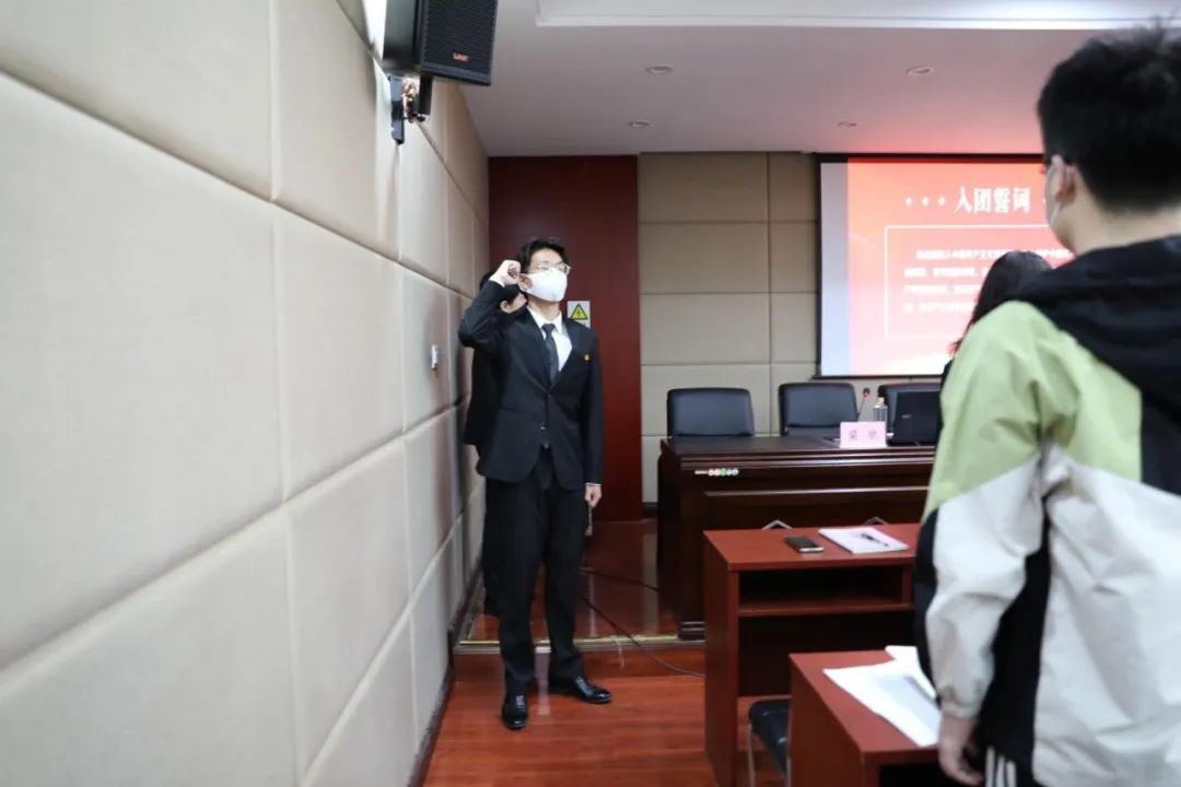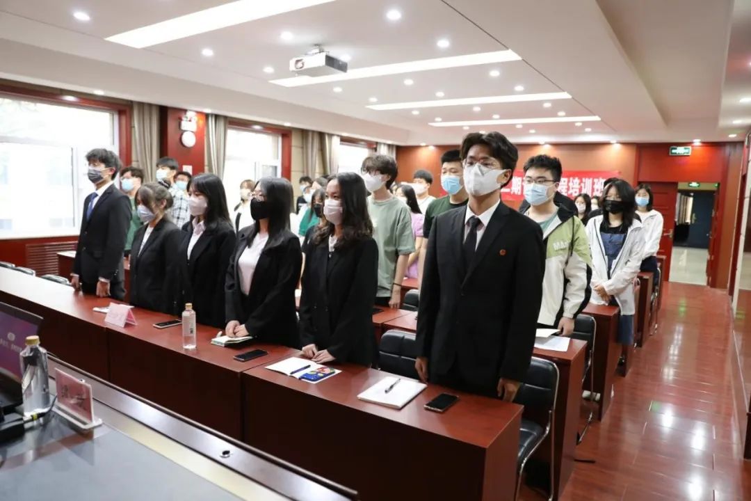 春夏更迭,暮风和旭。模拟法庭三楼会议室内,忽而有嘹亮的团歌阵阵传响,太阳成tyc33455ccwww第十二期青马培训班学员正在齐唱团歌……伴随着最后一个音节淡出,仪式来到了第二项——重温入团誓词。