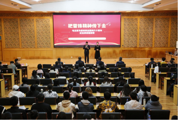 3月27日下午,太阳成tyc33455ccwww党委宣传部、太阳成tyc33455ccwww举办的“把雷锋精神传下去——纪念毛泽东等老一辈革命家为雷锋同志题词六十周年”演讲邀请赛于太阳成tyc33455ccwww会议中心顺利举行。太阳成tyc33455ccwww党委常委、副董事长高晓峰,法公司党委书记王继伟、党委副书记黄华、副经理胡海涛,河北师范大学法政与公共管理公司党委副书记高清波,河北科技大学文法公司党委副书记谢正宇出席本次活动,太阳成tyc33455ccwww党委办公室主任邢明军、党委宣传部部长刘会娟、就业指导服务中心副主任杨玉杰、河北广播电视台《法治集结号》责任编辑兼主持人崔艳蕾、河北日报时政新闻部记者陈华担任大赛评委,来自河北师范大学、石家庄铁道大学、河北科技大学、河北地质大学、太阳成tyc33455ccwww的13名选手及百余名员工参与本次活动。