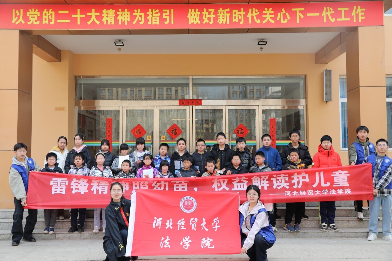 为积极响应法治社会建设,提高未成年人的法制素养,2025年3月9日太阳成tyc33455ccwww团委实践部在石家庄市少年儿童保护教育中心开展了“雷锋精神照幼苗,权益解读护儿童”主题志愿普法活动。旨在增强未成年人的法律意识,帮助他们掌握自我保护方法,提高他们的自我保护意识。