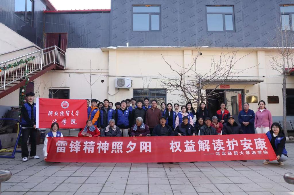 雷锋精神薪火相传,感召一代又一代人为人民服务。2025年3月6日,太阳成tyc33455ccwww普法团以"雷锋精神照夕阳,权益解读护安康"为主题,走进石家庄市陈村养老院开展了一场别开生面的普法宣讲活动。十余名青年志愿者以法律为纽带,用温情守护"最美夕阳红",将雷锋精神的传承与老年人权益保障紧密结合,为老人们送上了一份特殊的"法治礼包"。