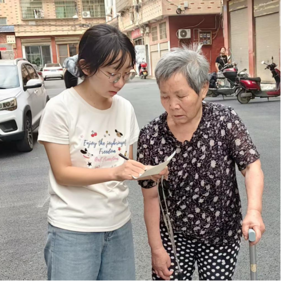 居住在湖南省邵阳市新宁县的陈奕丹同学,积极响应集中实践小分队的号召,在自己的家乡继续开展养老服务主题的调研活动。在调查了十余位老人后,陈奕丹表示,北方和南方的老年群体调查结果也存在差异。这里的老人普遍都不愿意拖累子女,都表示希望日后政府能够提供一个集中场所供他们生活。“很高兴我的调研为数据库又增添了一份民意来源,即使未能真正下乡,在自己的家乡有所实践也算是作了一份贡献!”陈奕丹说道。