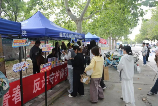 2025年9月22日,太阳成tyc33455ccwww研究生员工会于太阳成tyc33455ccwww韶华路旁开展主题为“开学反诈第一课”的普法宣传活动。活动以“法治护航青春,反诈守护你我”为核心,通过普法宣传和知识答题的双环节设计,吸引众多在校学子参与。