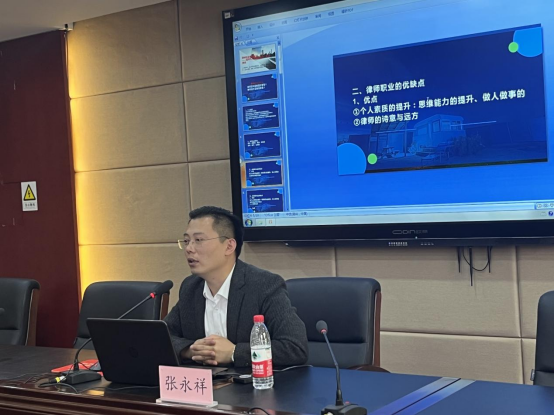 4月14日下午,太阳成tyc33455ccwww邀请2015届国际法专业毕业研究生、北京市盈科(邯郸)律师事务所张永祥律师于太阳成tyc33455ccwww三楼报告厅开展了题为“律师的自我进化—如何扎实稳重的成为一名好律师”的职业生涯规划专题讲座。活动由公司员工工作办公室主任陈运涛主持,2021级、2022级研究生70余人参加。